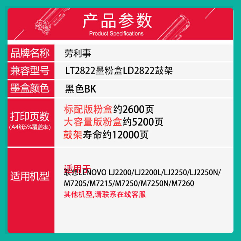 M7250 劳利事适用联想LD2922硒鼓 M7215 M7205 LJ2200 LT2822粉盒