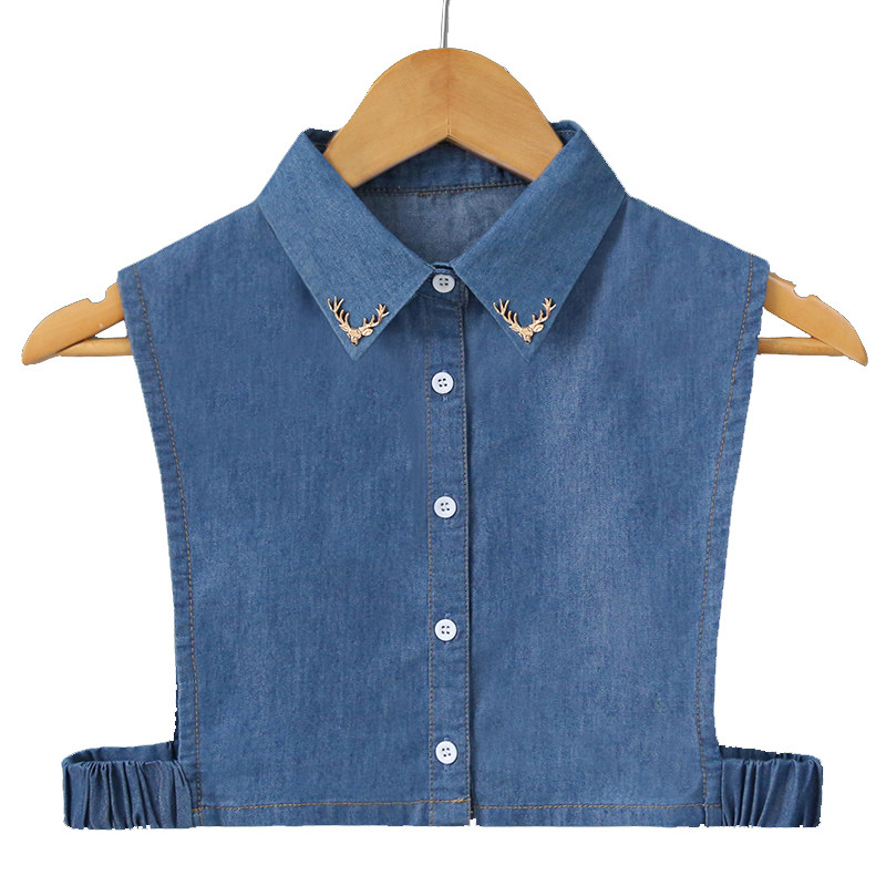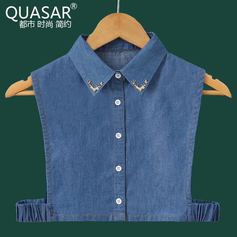领衬衣领 饰领假领子女士可拆小鹿扣饰牛仔衬衫 Quasar新款 毛衣装