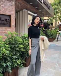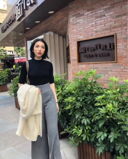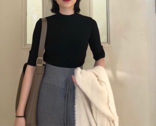 显瘦针织上衣修身 显瘦圆领黑色中袖 毛衣 秒杀 晚时光