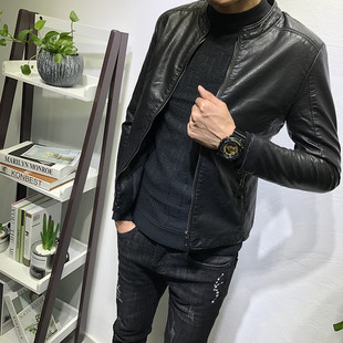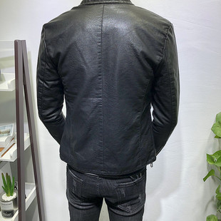 夹克社会人网红外套 修身 经典 百搭立领皮衣加绒加厚潮男秋冬新韩版