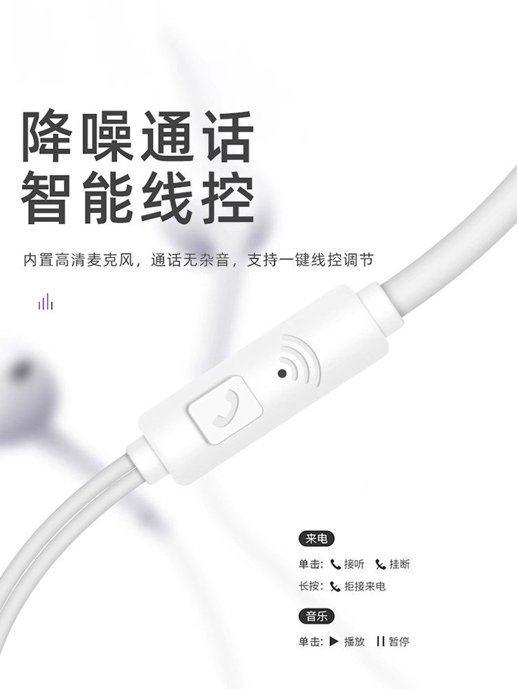 手机耳机有线听歌入耳式 typec接口安卓高音质耳塞圆孔带麦通用
