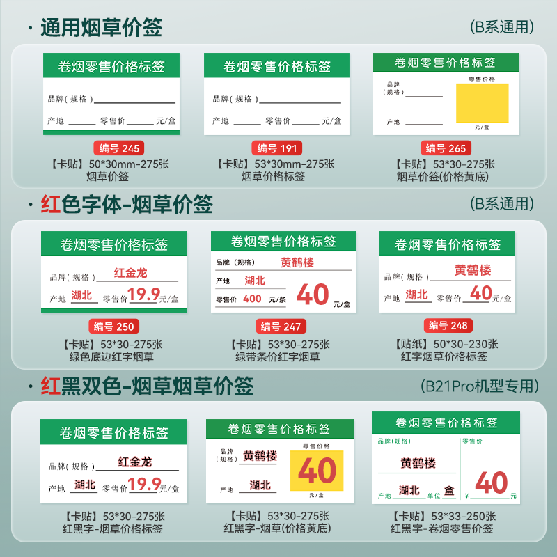 B31烟草卷烟零售价格标签纸烟草局商品价签红双色 B3S 精臣B1 B21