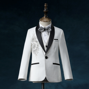 儿童西装 男童模特英伦走秀主持人小花童礼服中大童钢琴演出服 套装