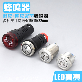22mm金属蜂鸣器防水带灯光断续持续响发声警报器 万度 开孔16