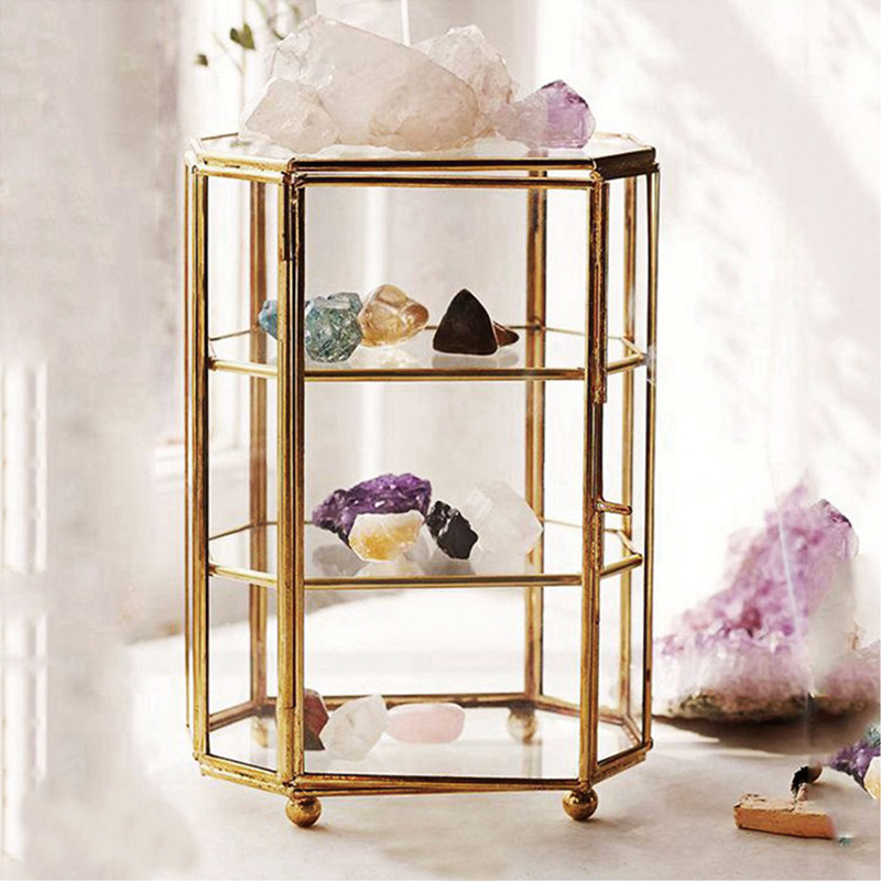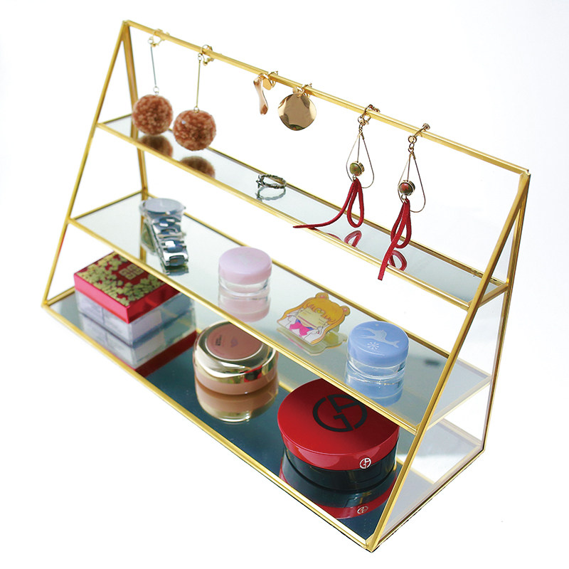 轻奢简约玻璃化妆品金边收纳盒子公主耳环耳钉项链手表饰品首饰盒