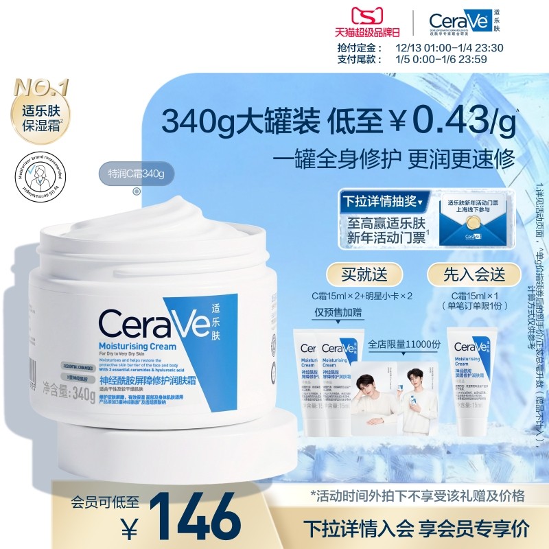 张凌赫同款 CeraVe适乐肤C霜保湿 修护乳液面霜身体男女士正品