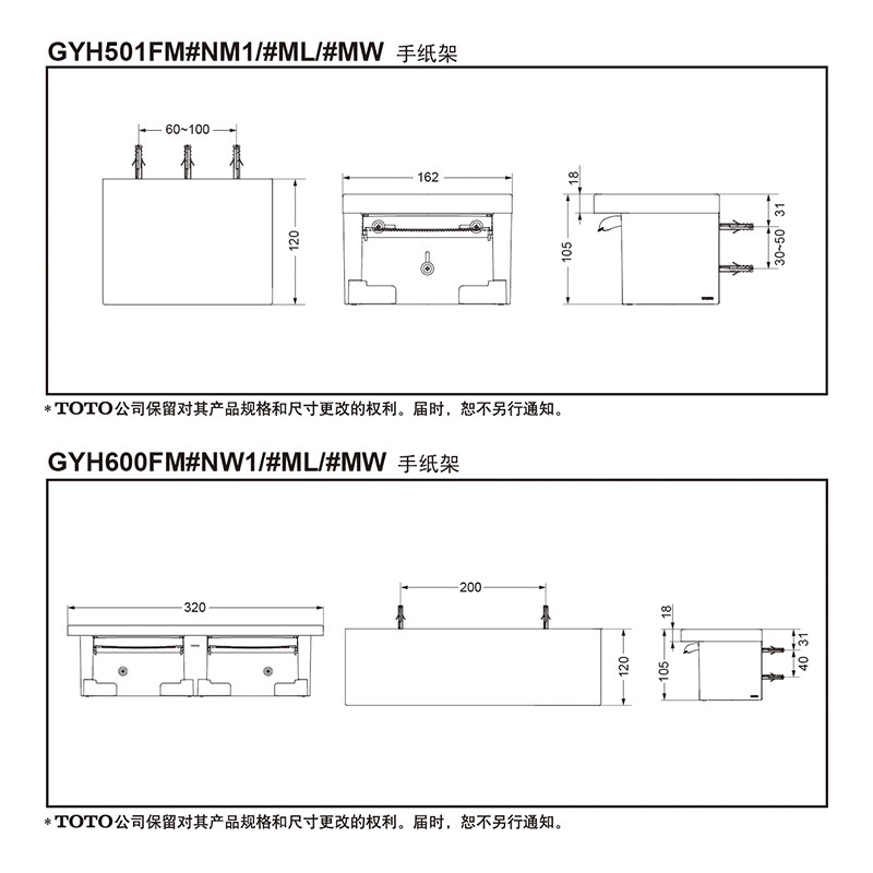 TOTO手纸架YH501 600FM卫生间卷纸架置物单双联手纸厕纸卷筒