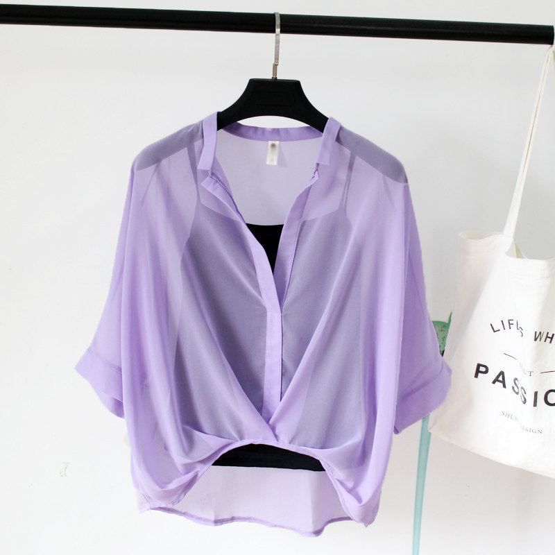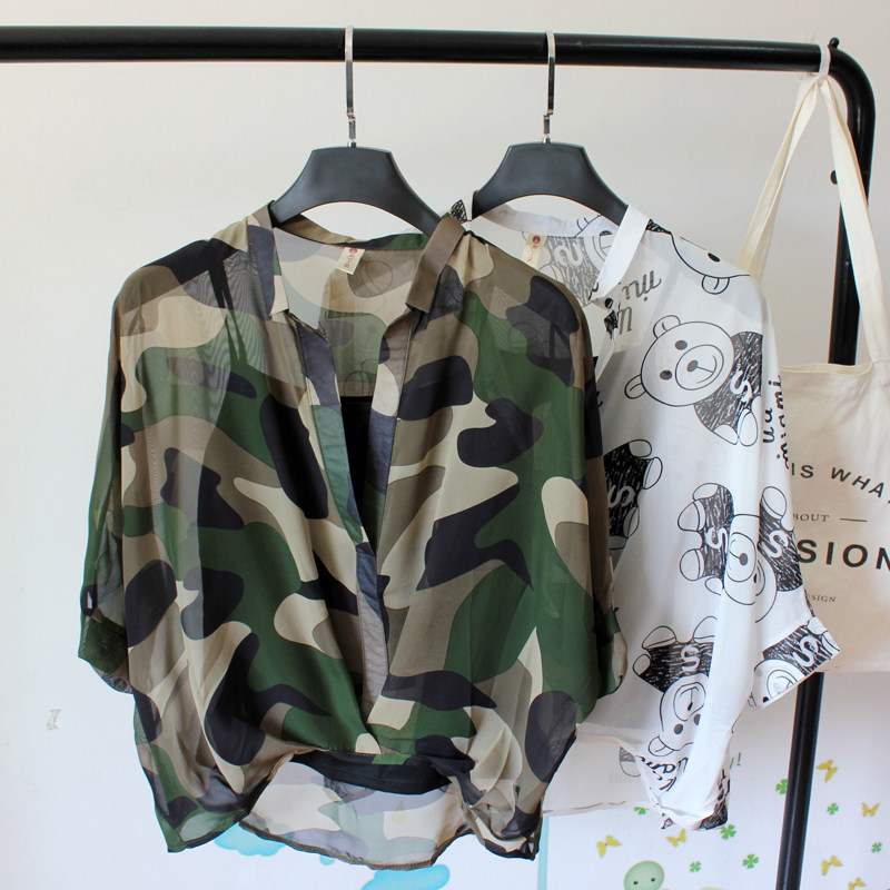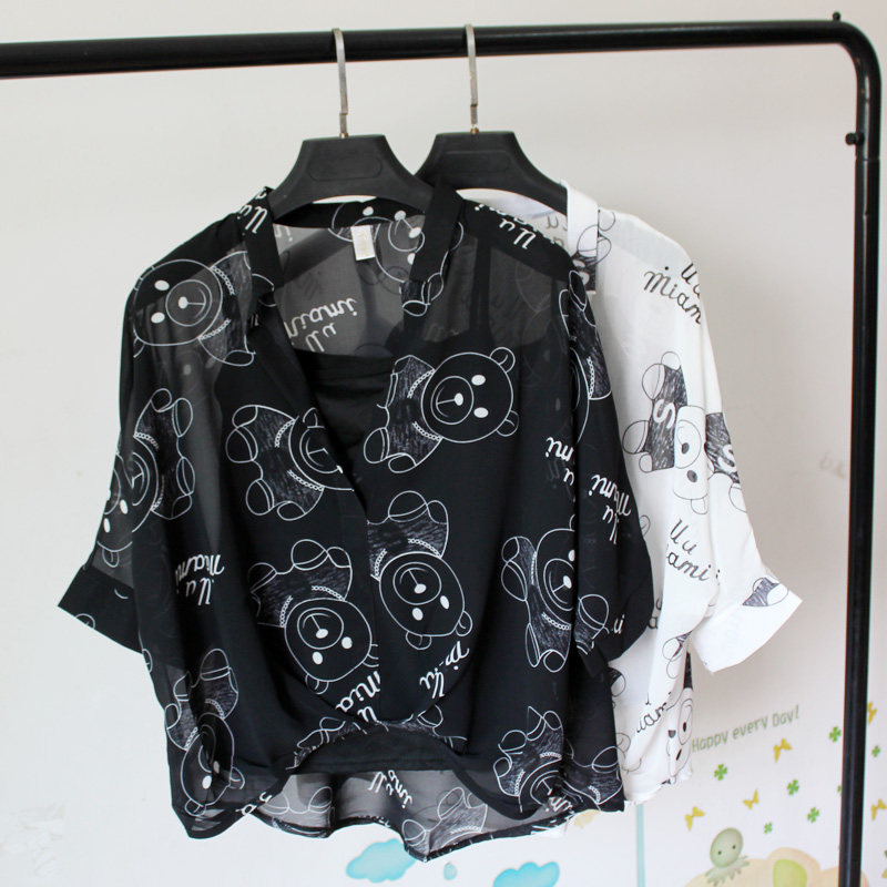 吊带两件套夏装 蝙蝠短袖 新款 潮宽松大码 防晒上衣 韩版 减龄雪纺衬衫