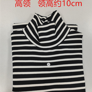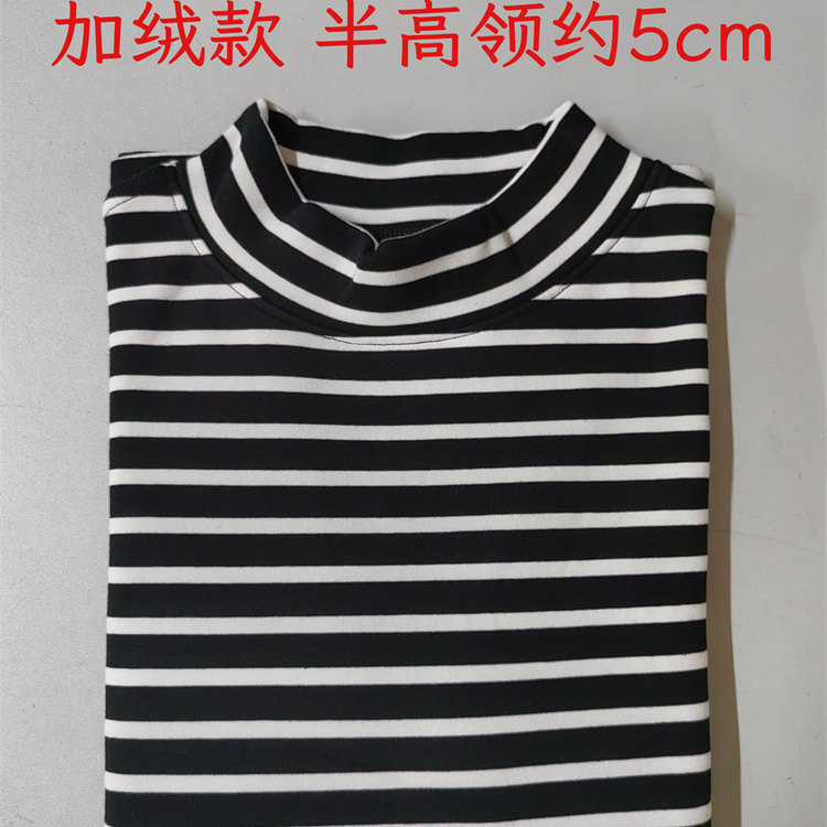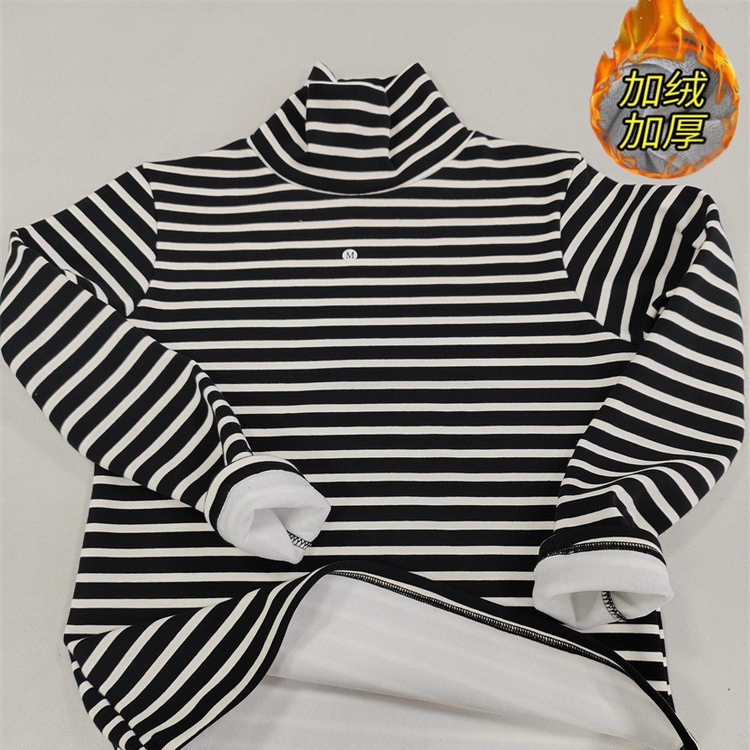 高领打底衫 男装 保暖秋衣t恤内搭不倒绒衣服 加绒加厚条纹长袖 冬季