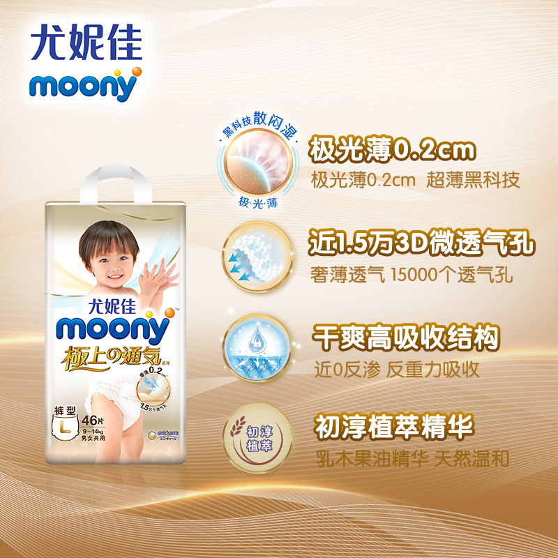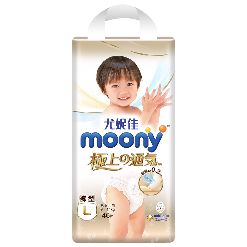 型纸尿裤 2包婴儿尿不湿超薄透气裤 L46 尤妮佳moony极上通气小内裤