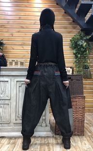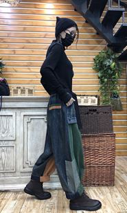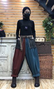 撞色潮流老爹裤 时尚 宽松百搭哈伦裤 女2020秋季 一族复古拼接牛仔裤