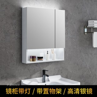 太空铝浴室镜柜单独卫生间挂墙式 带灯防水除雾镜子置物架收纳镜箱