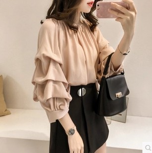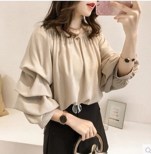 气质一字领女露肩雪纺衫 韩版 女宽松泡泡上衣显瘦纯色 新款 2020春季