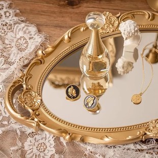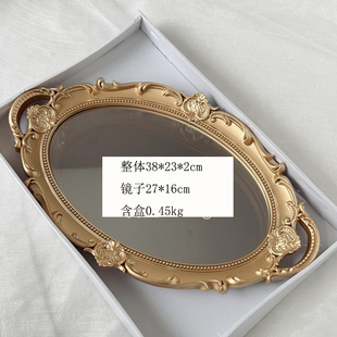 欧式 复古镜面托盘家用放茶杯化妆品甜品收纳盘首饰品拍照道具摆件