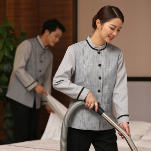 春秋小区物业楼层商超阿姨 酒店清洁员工装 配袖 客房保洁工作服长袖