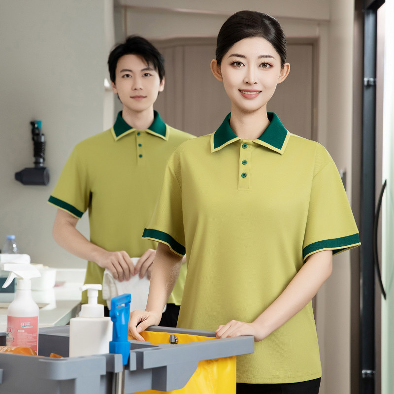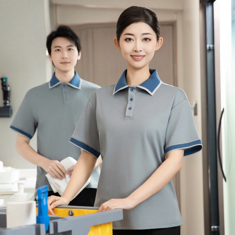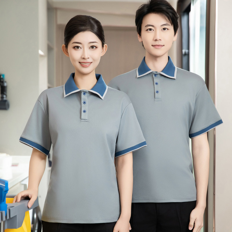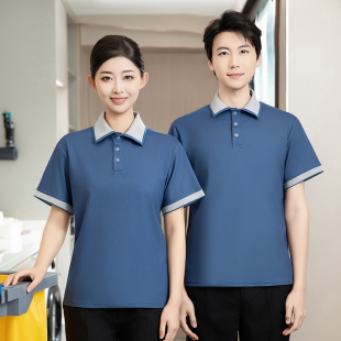 翻领T恤工作服短袖 夏半男女透气薄商场超楼层清洁员酒店客房保洁
