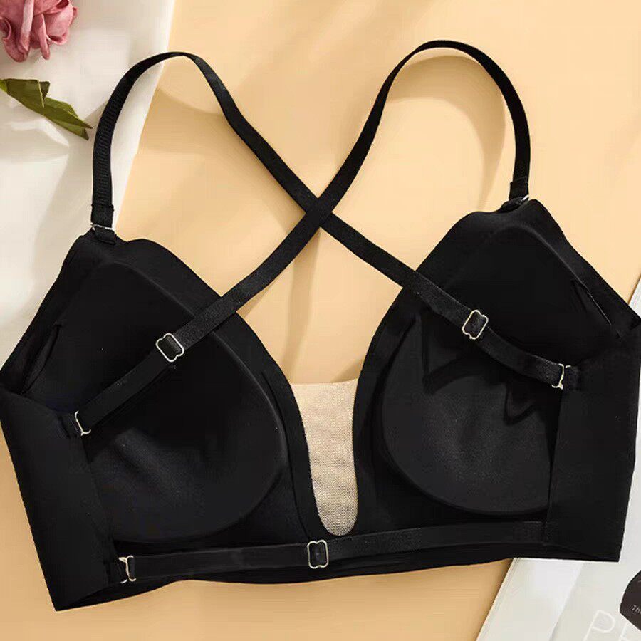性感网纱拼接无痕轻薄女士欧美内衣美背型交叉细带无钢圈露背文胸