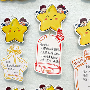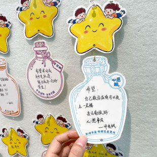 班级新年心愿墙布置装 饰吊卡小学生diy星星许愿瓶卡片教室文化墙学习开学空白可手写励志目标梦想卡寄语贺卡