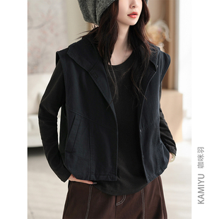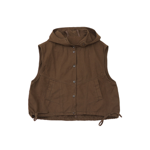 帽子背心外套 女士坎肩纯棉流行洋气好看时尚 咖咪羽马甲女秋装 新款