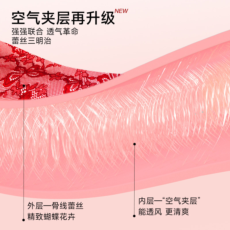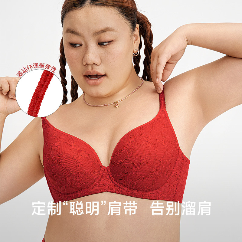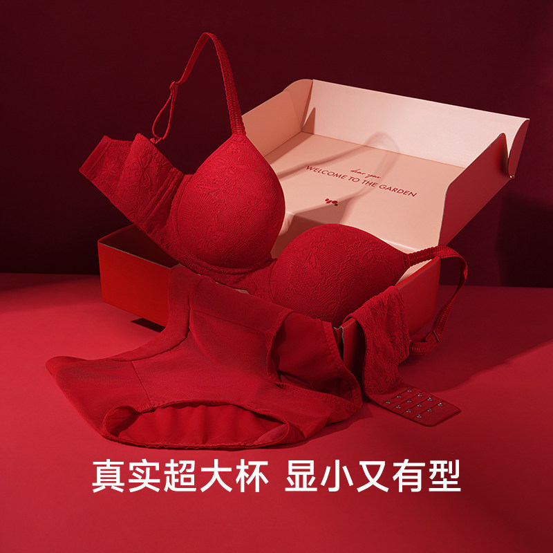 女结婚本命年新娘文胸内裤 大胸显小红色内衣套装 透心杯 怡倩