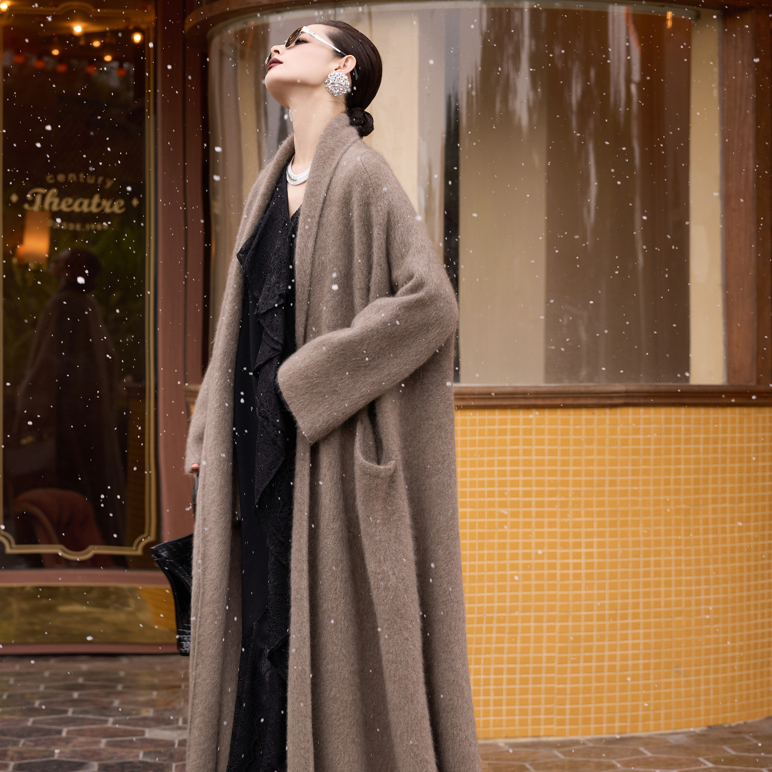 松弛感毛呢外套 新款 TU女装 重工加厚牦牛绒拉绒大衣25年冬季