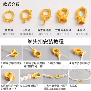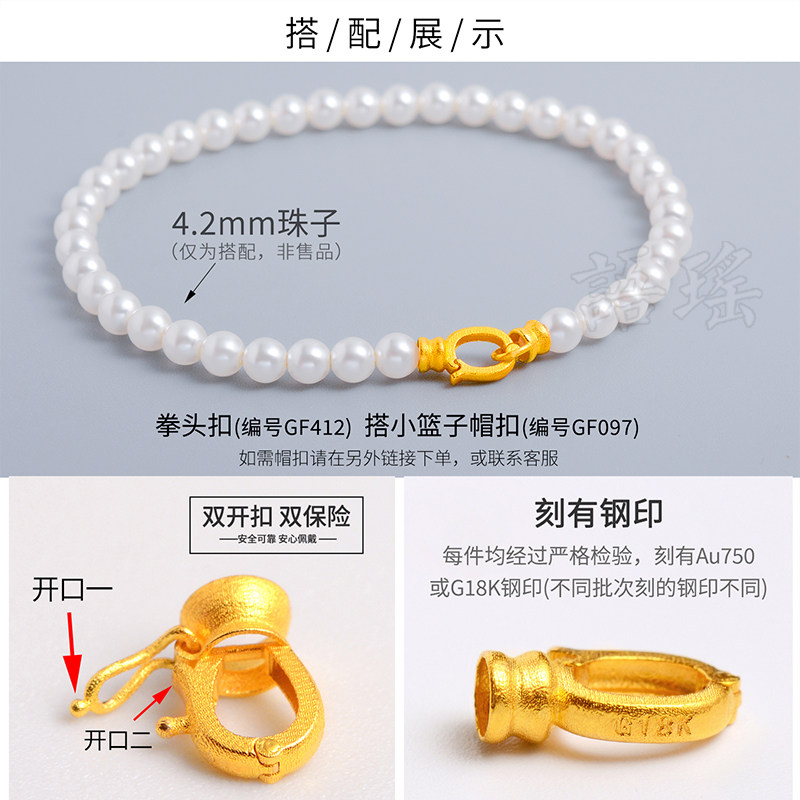 18k金扣头古法配件连接扣子拳头au750黄金吊坠扣配件珍珠项链手链