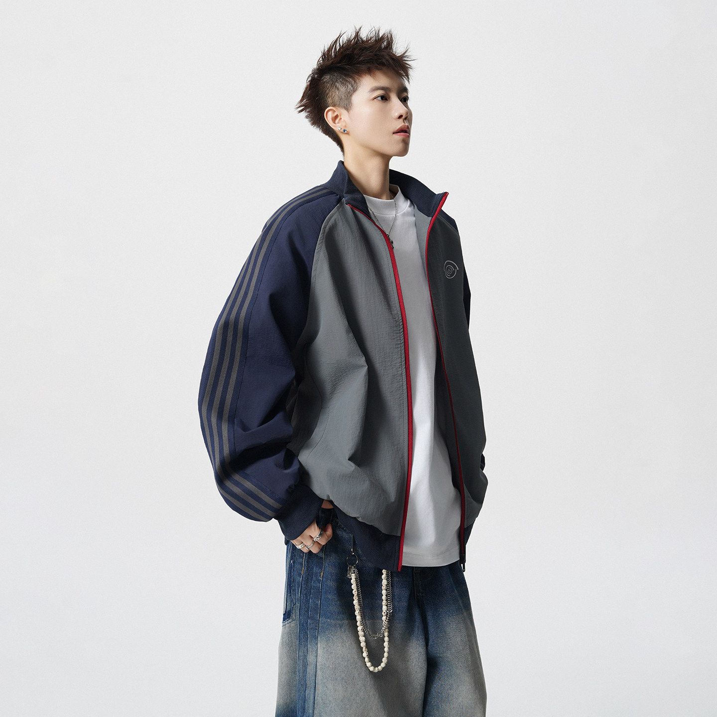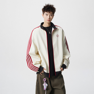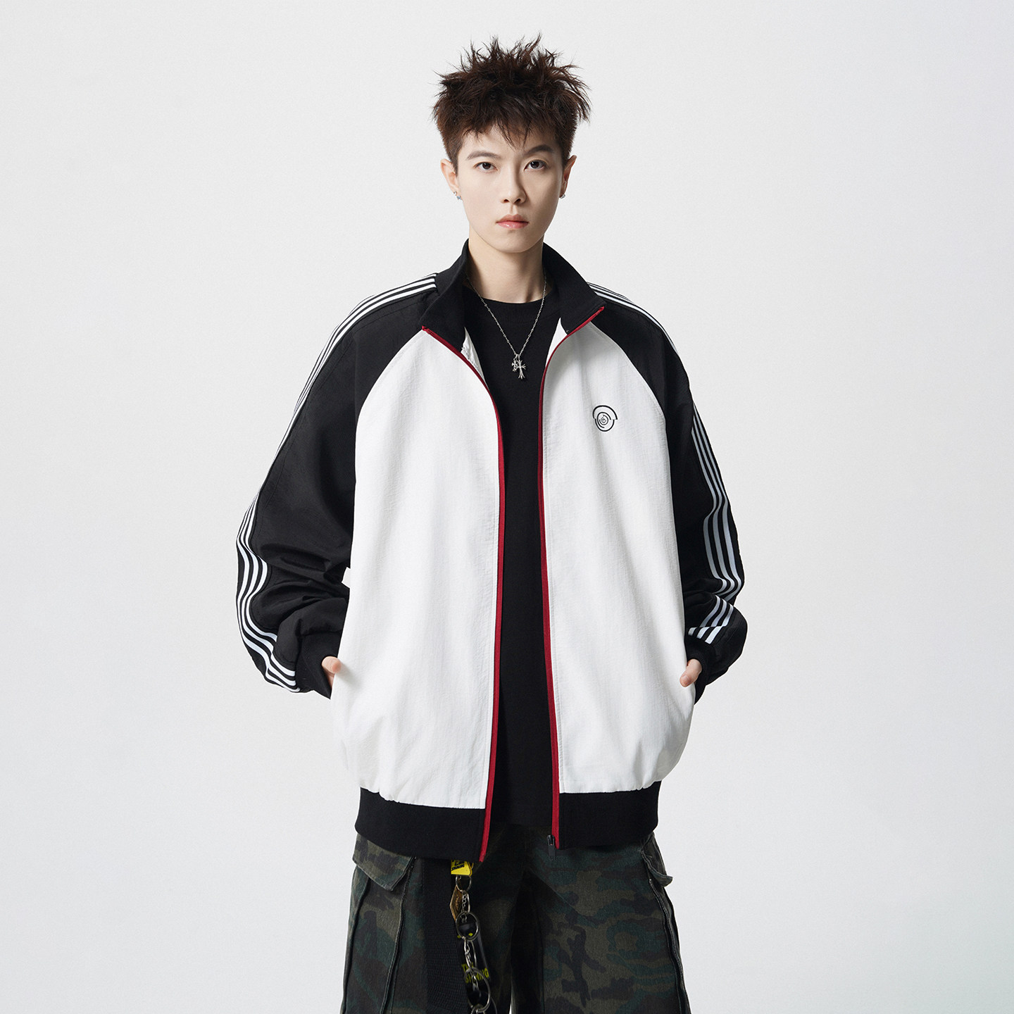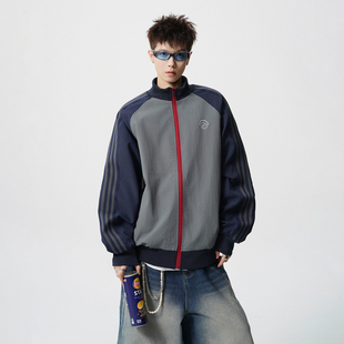 迈特优潮牌立领条纹卫衣男秋季 撞色拼接运动夹克百搭情侣外套 美式