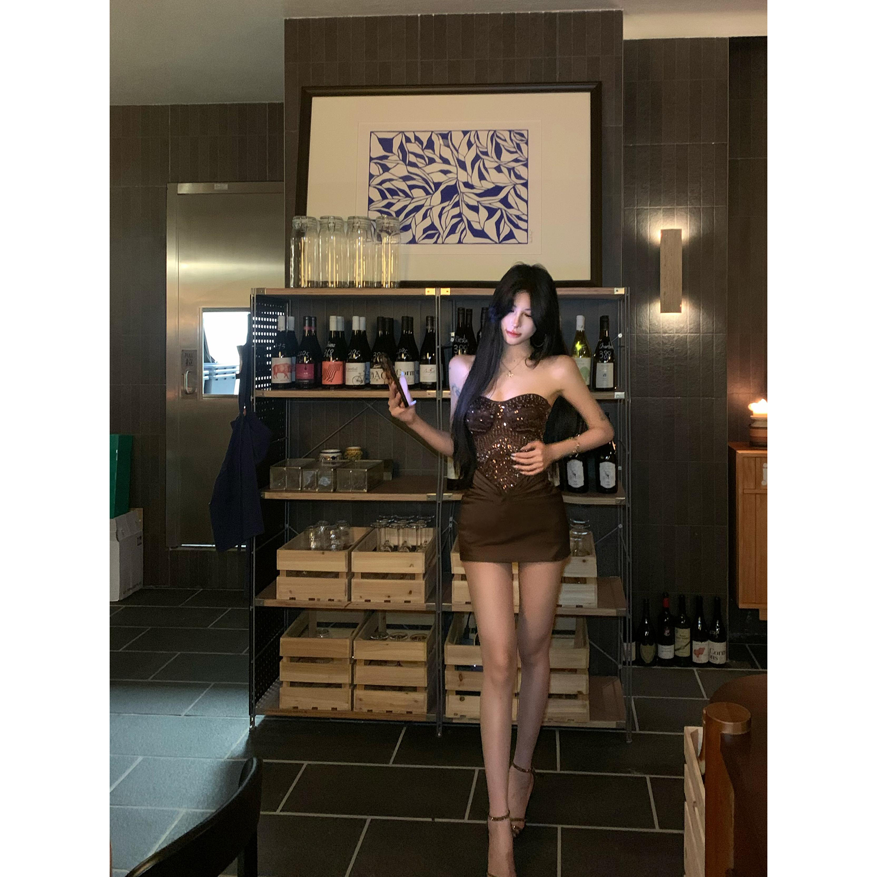 牛了牛了 拼接包臀裙生日裙子 一字肩抹胸连衣裙女2025秋冬法式