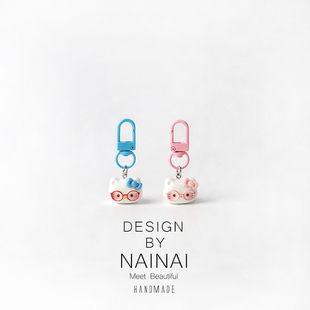Jinnew原创碎花拉耳兔挂件奶酪黄毛绒公仔抽拉兔子钥匙扣书包挂饰