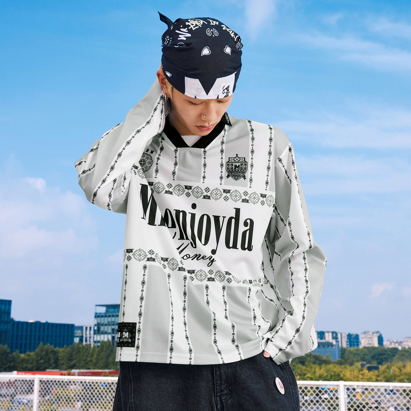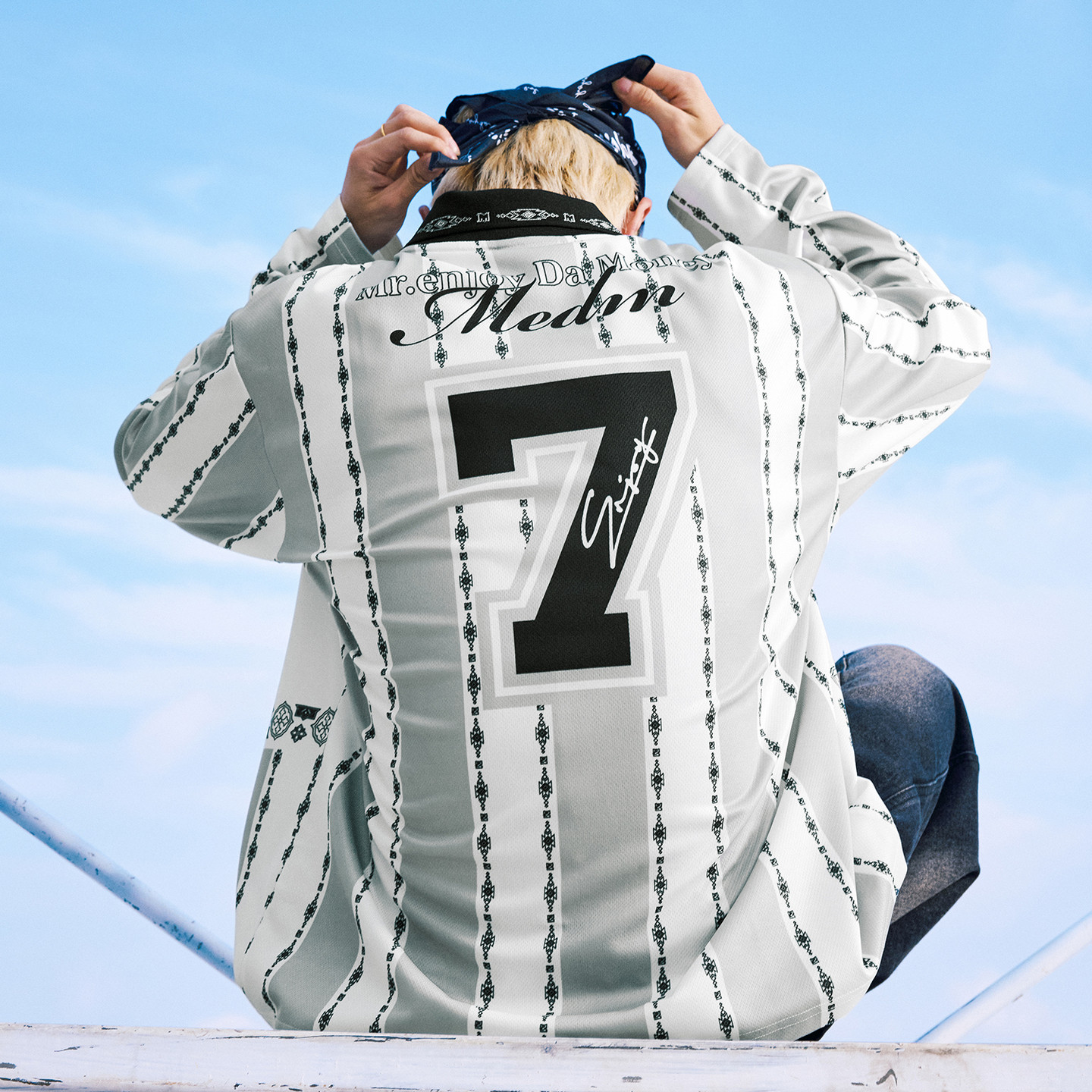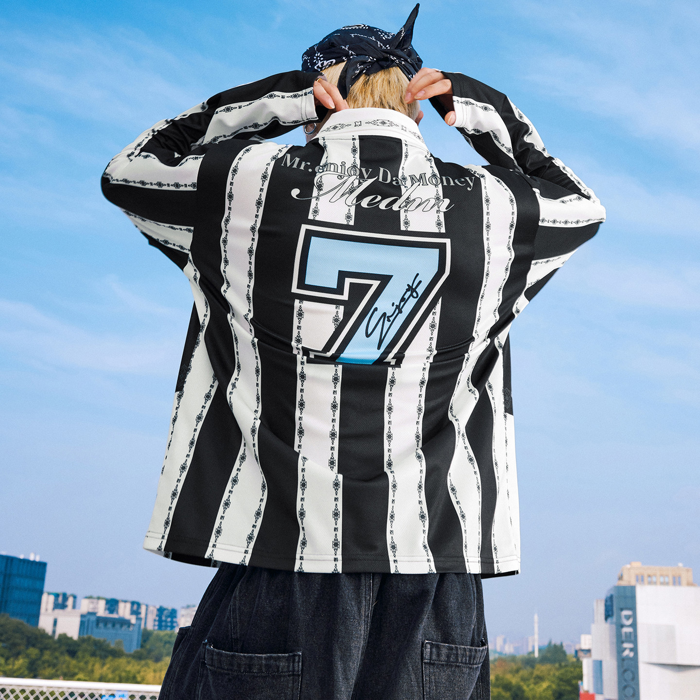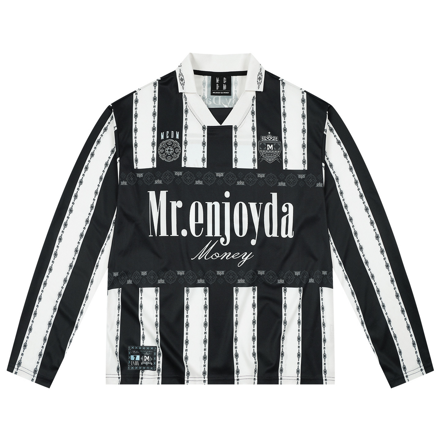 通勤情侣宽松翻领上衣春秋 T恤美式 MEDM 撞色条纹拼接休闲球衣长袖