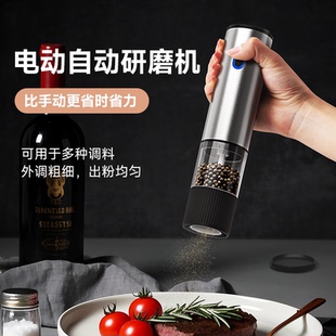电动胡椒研磨器调料海盐厨房家用高端不锈钢黑胡椒粒研磨器胡椒粉
