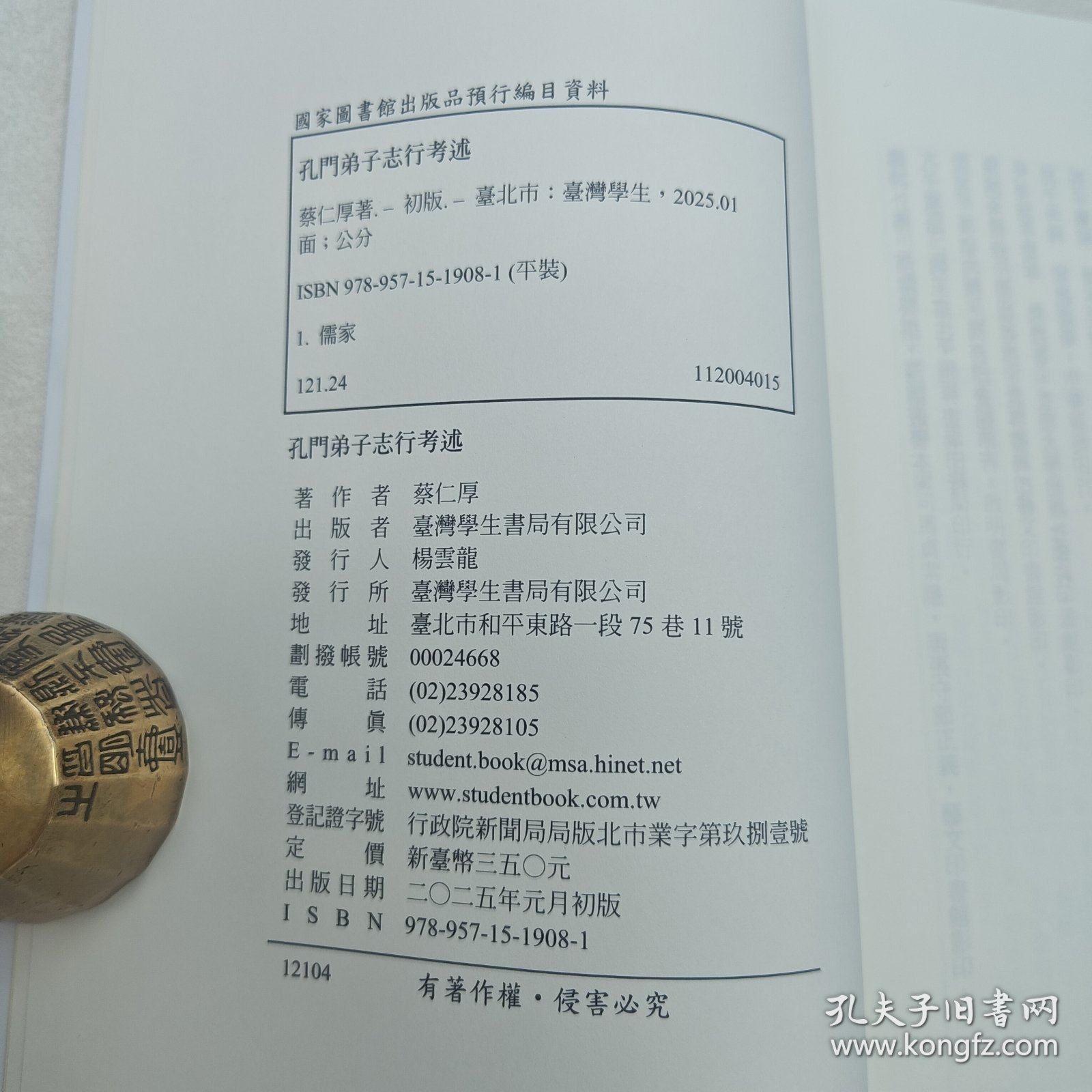 锁线胶订 孔門弟子志行考述 蔡仁厚 台湾学生书局 现货 正版 港台原版