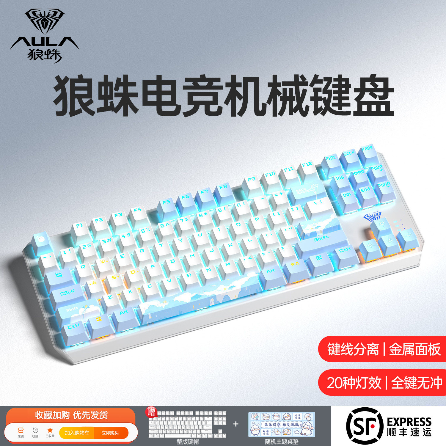 狼蛛F3287机械键盘F87键三模无线便携电竞游戏办公蓝牙台式 笔记本