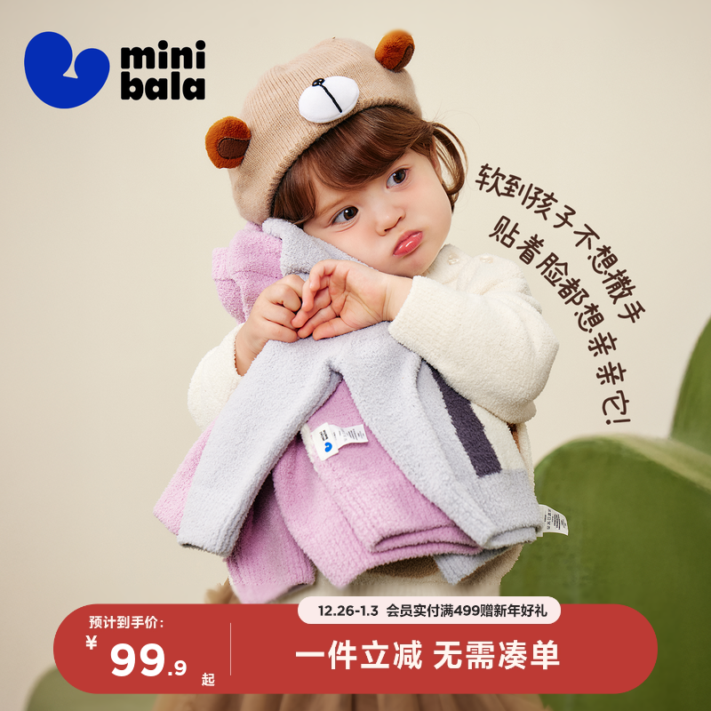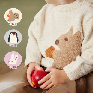 迷你巴拉巴拉男女童宝宝半边绒提花图案毛衣2025冬新品 贴贴毛衣