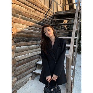 胖mm特大码 毛呢外套 黑色赫本风呢子大衣女秋冬高级感慵懒风中长款