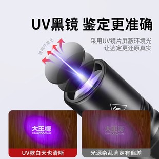 紫光灯鉴定专用验钞365nm鉴别烟酒翡翠照玉石手电筒紫外线检测笔