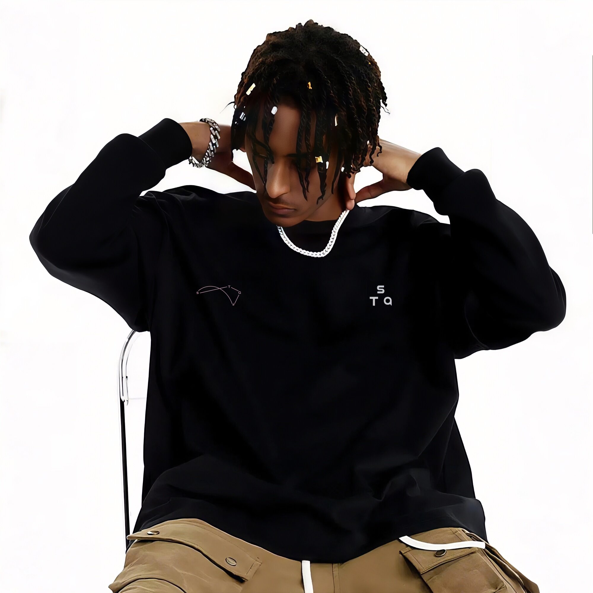 高街重磅纯棉情侣黑色卫衣 男女秋季 STA旗舰店潮牌美式 字母长袖