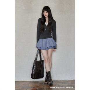 2025新款 遮臀下摆小香风A字短裙半身裙 高级黑色屁帘女叠穿鲨鱼裤