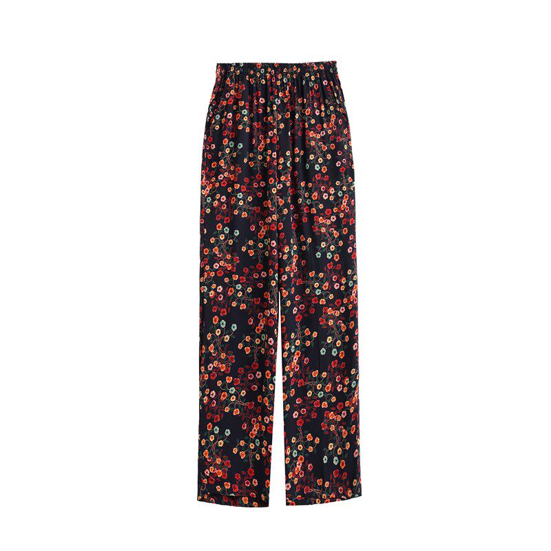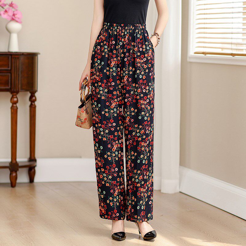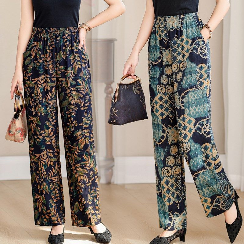 松紧腰加肥加大码 休闲棉绸裤 花裤 妈妈装 子 中老年女裤 九分裤 薄夏季