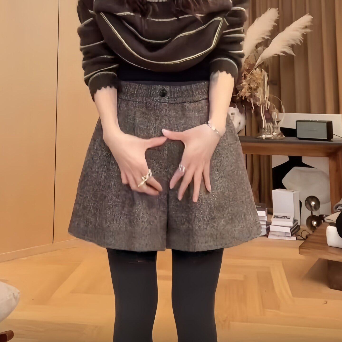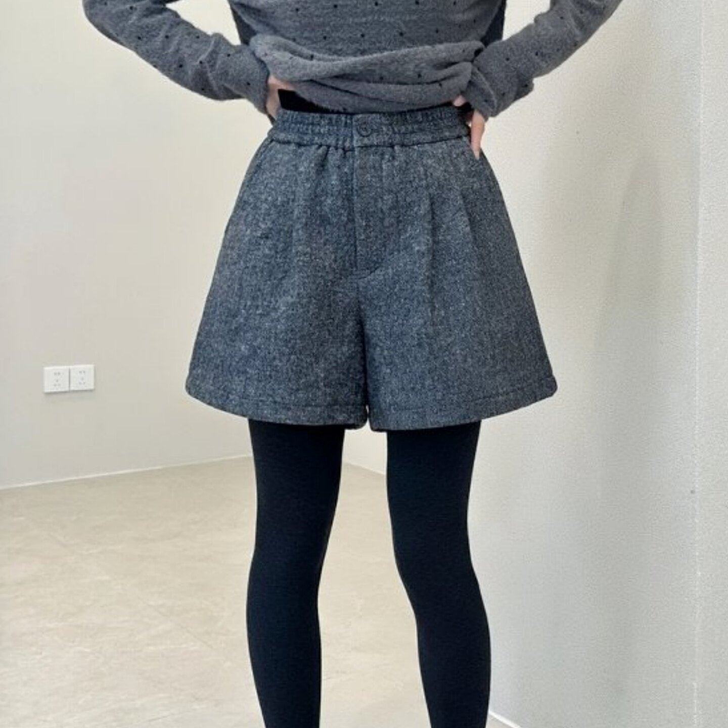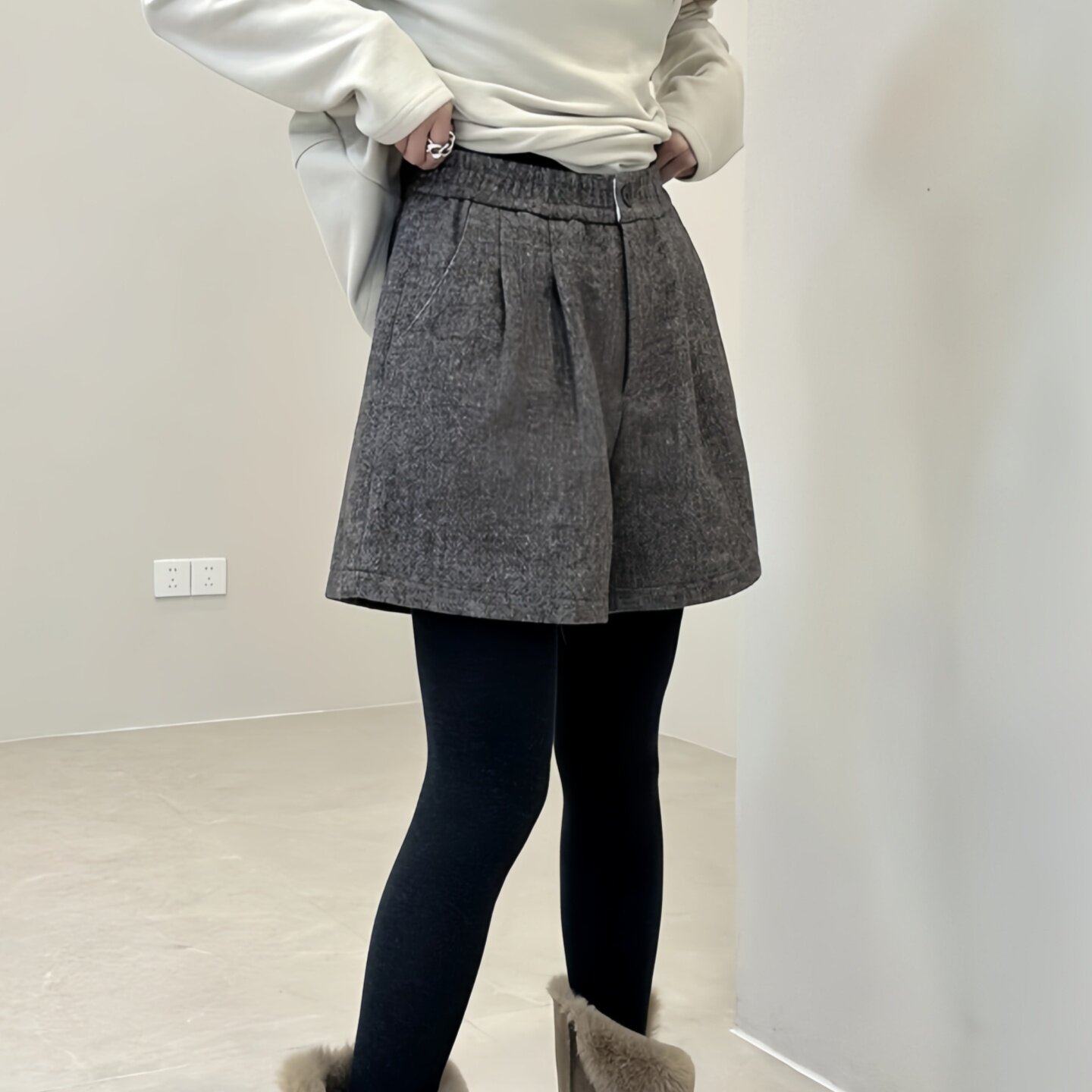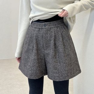 胖MM高腰显瘦宽松休闲裤 韩式 大码 女2025冬季 一粒扣毛呢阔腿短裤