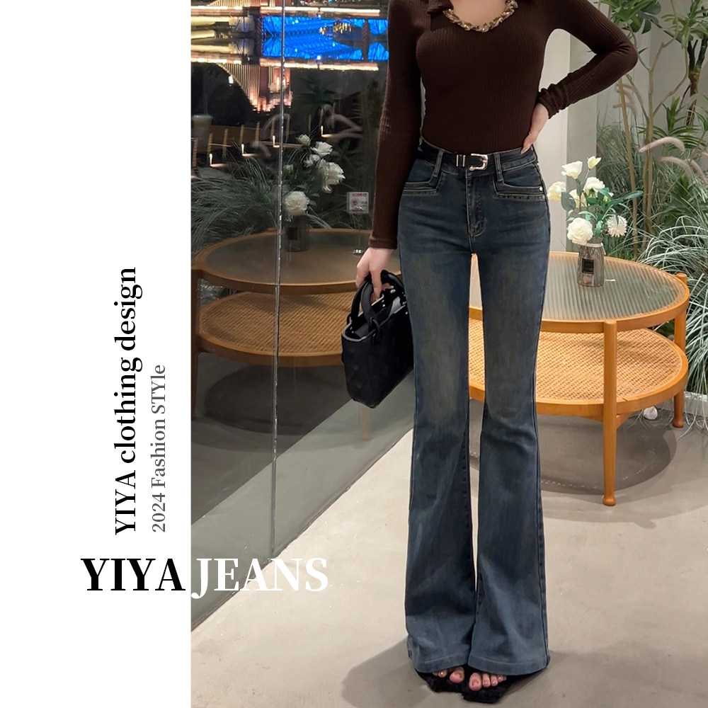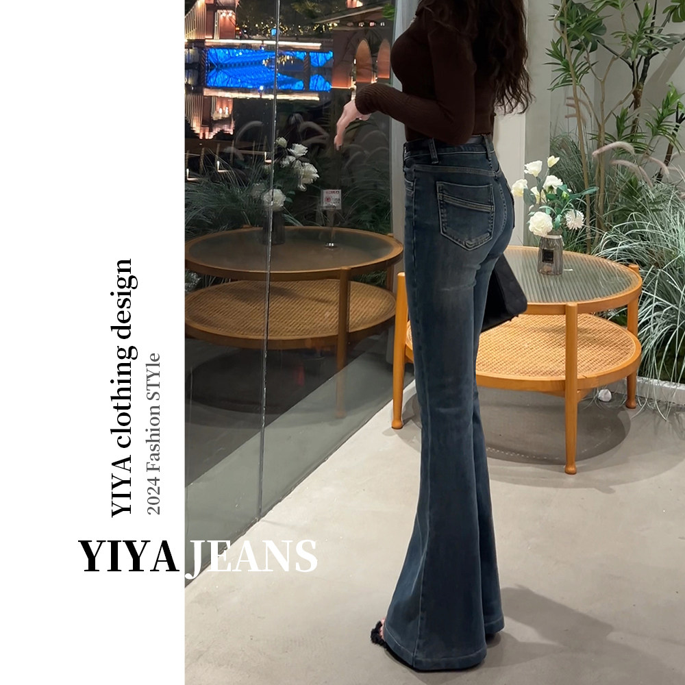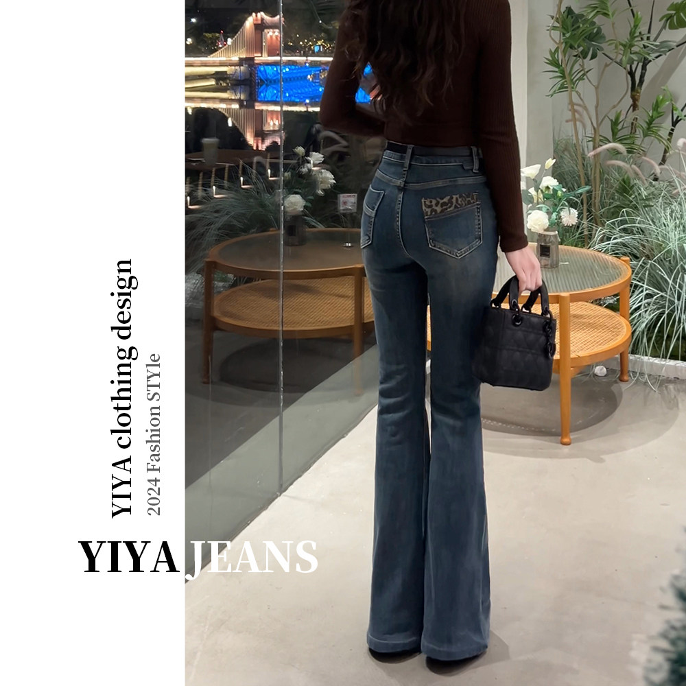 秋季 微喇裤 新款 牛仔裤 加绒 6837豹纹复古提臀高腰百搭显瘦修身