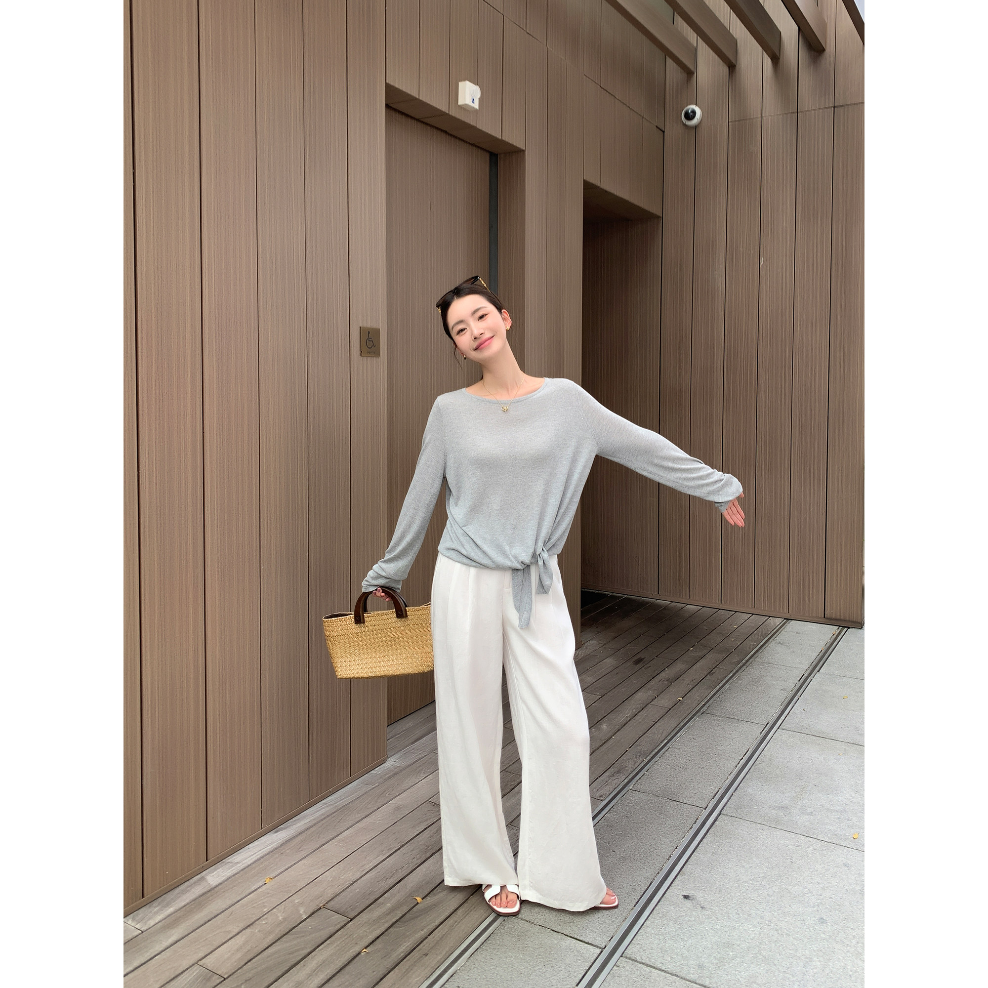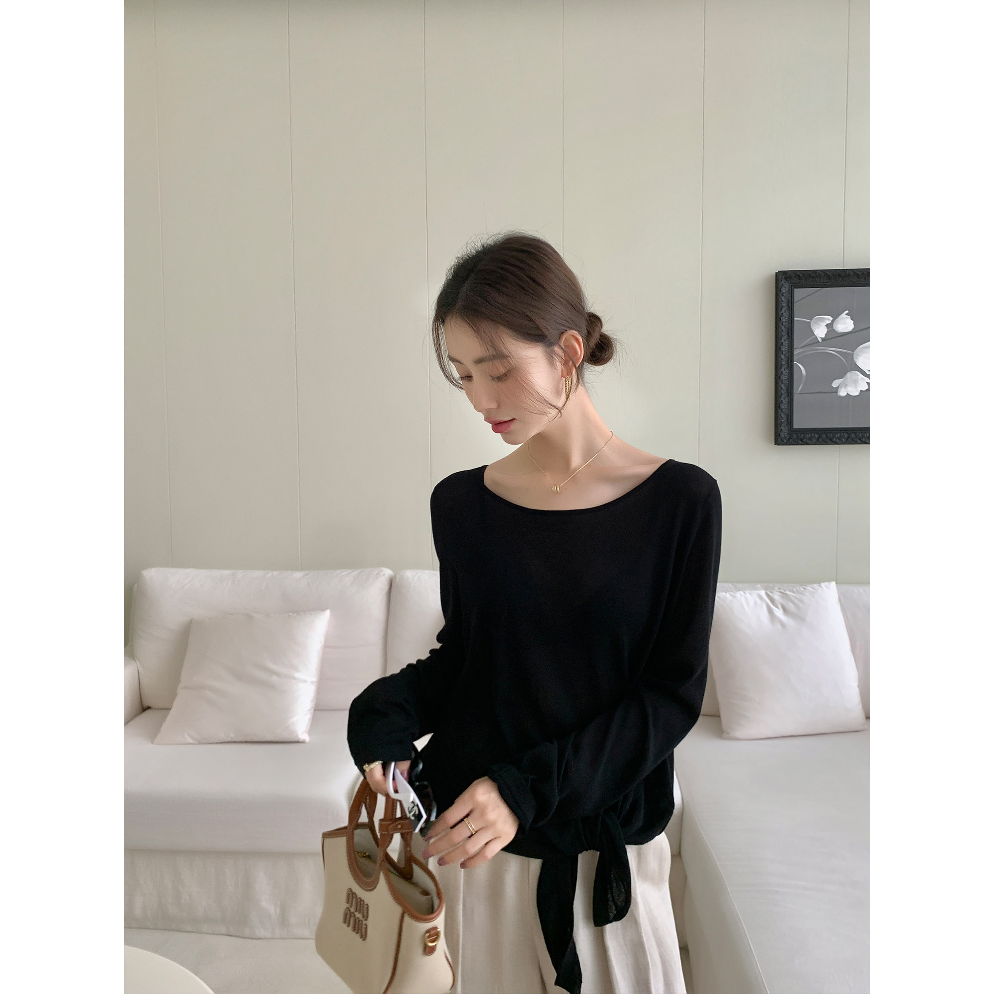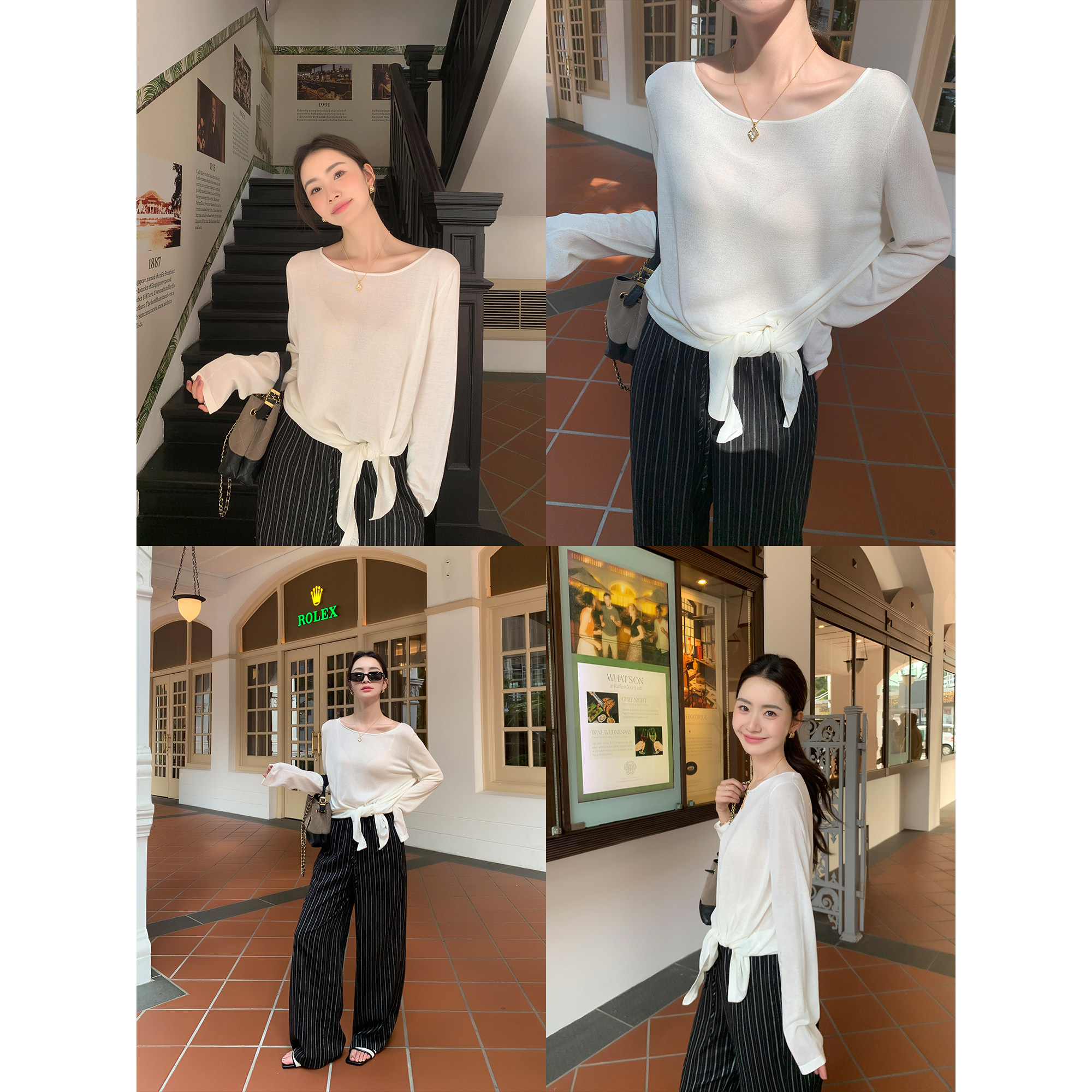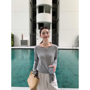 女不规则开叉微透罩衫 pusumede 针织衫 宽松圆领长袖 上衣 氧气韩妹