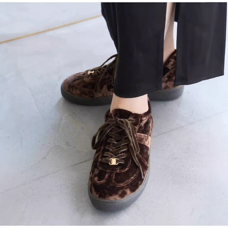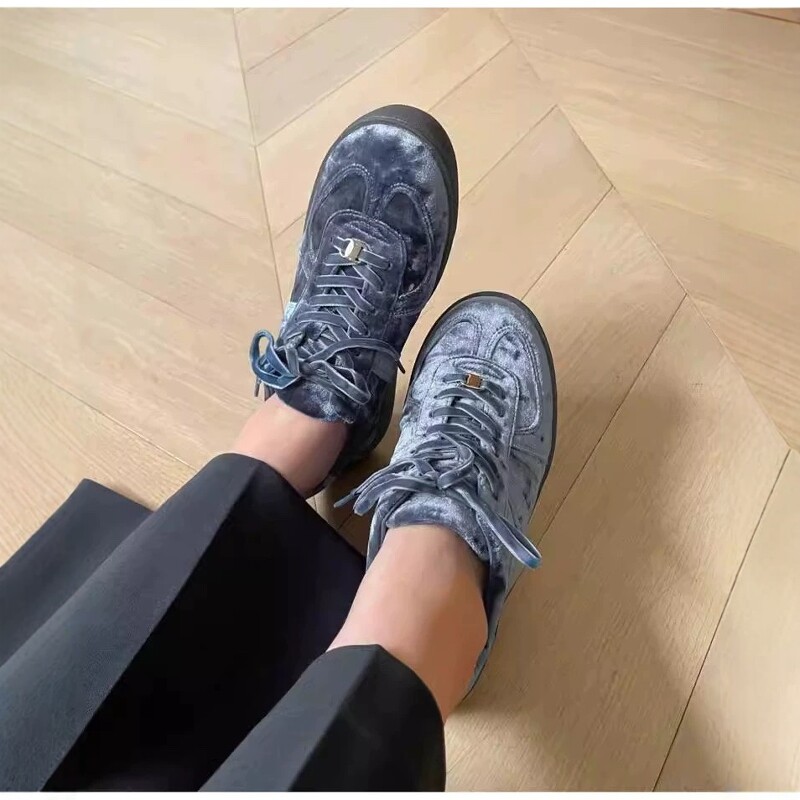 运动休闲鞋 日杂高级轻奢感 通勤板鞋 德训鞋 复古丝绒系带日系女鞋