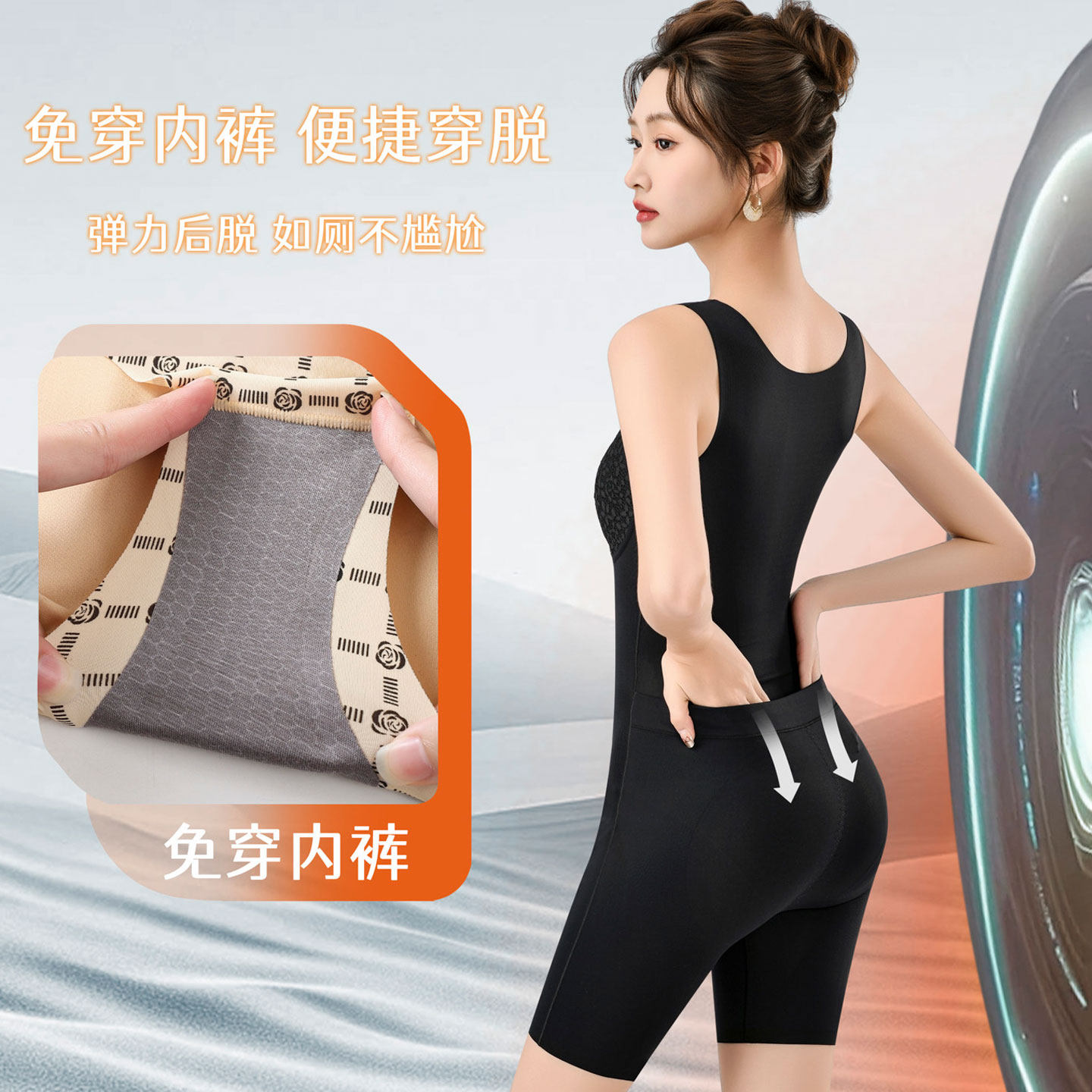 拉链排扣收腹塑身衣强压后脱式 带胸垫连体束腰产后美体塑形收肚子