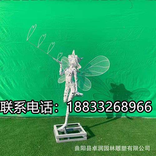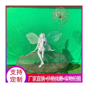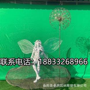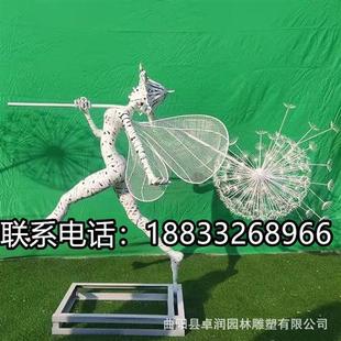 不锈钢人物雕塑抽象金属仙子蒲公英售楼部蝴蝶精灵美陈装 饰摆件