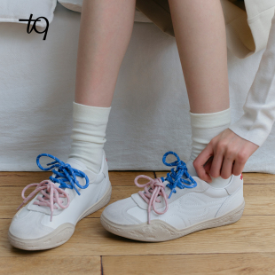 百搭德训鞋 双色系带刺绣小白脏脏鞋 tq女 新款 Talitaqoom2026年春季