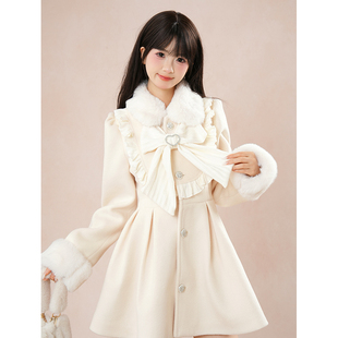 初秋祈愿 日系甜美保暖毛呢外套裙子蝴蝶结外套2025秋冬小个子女