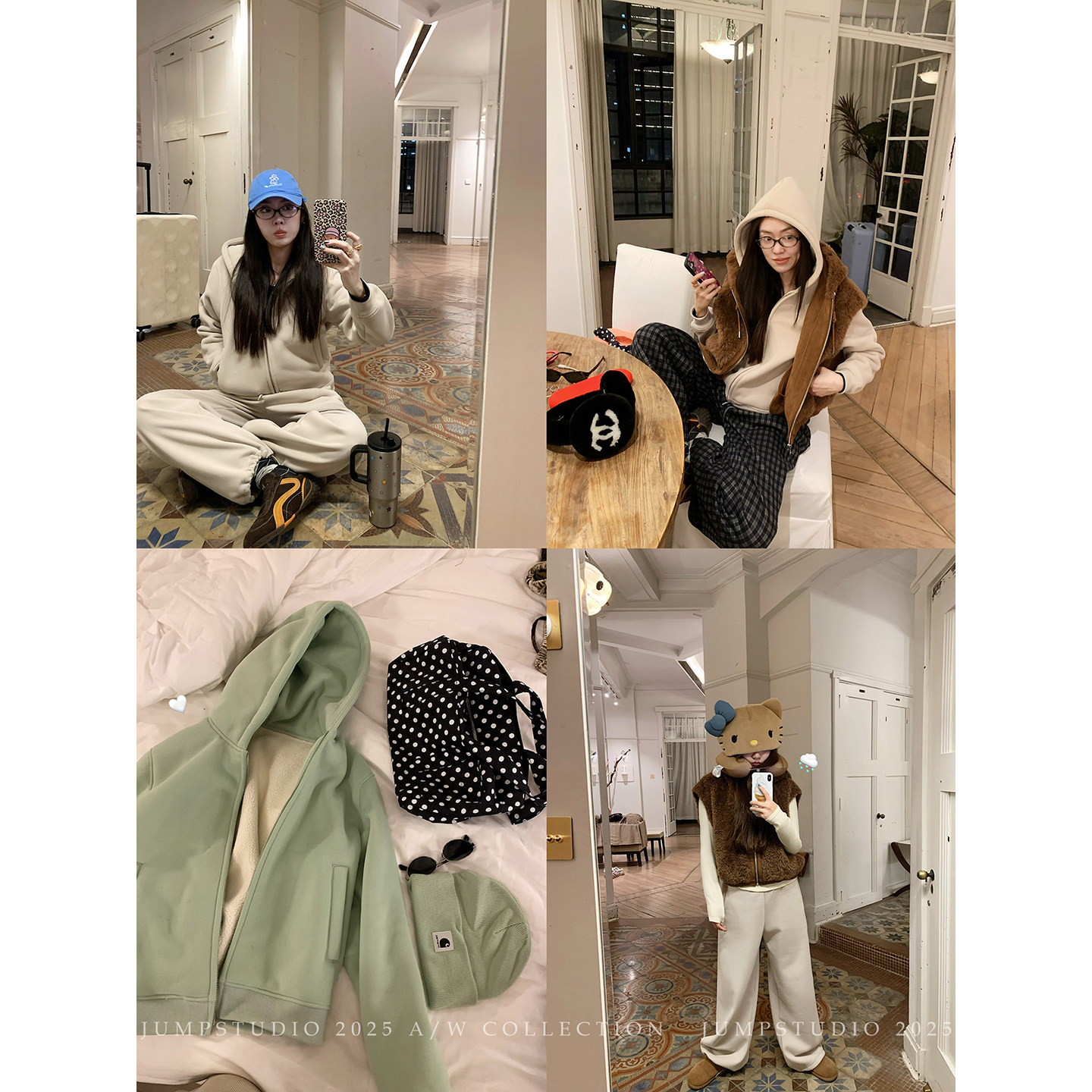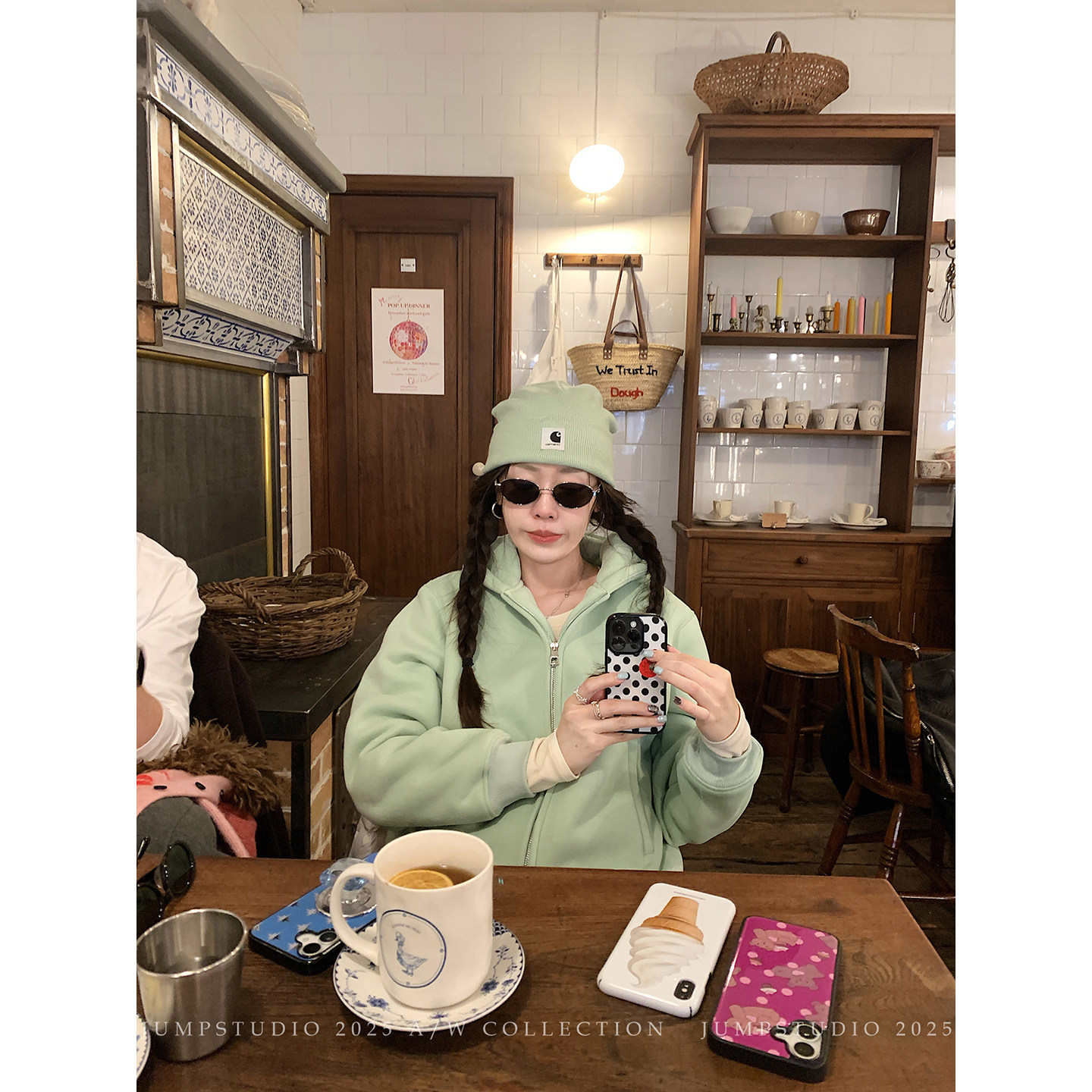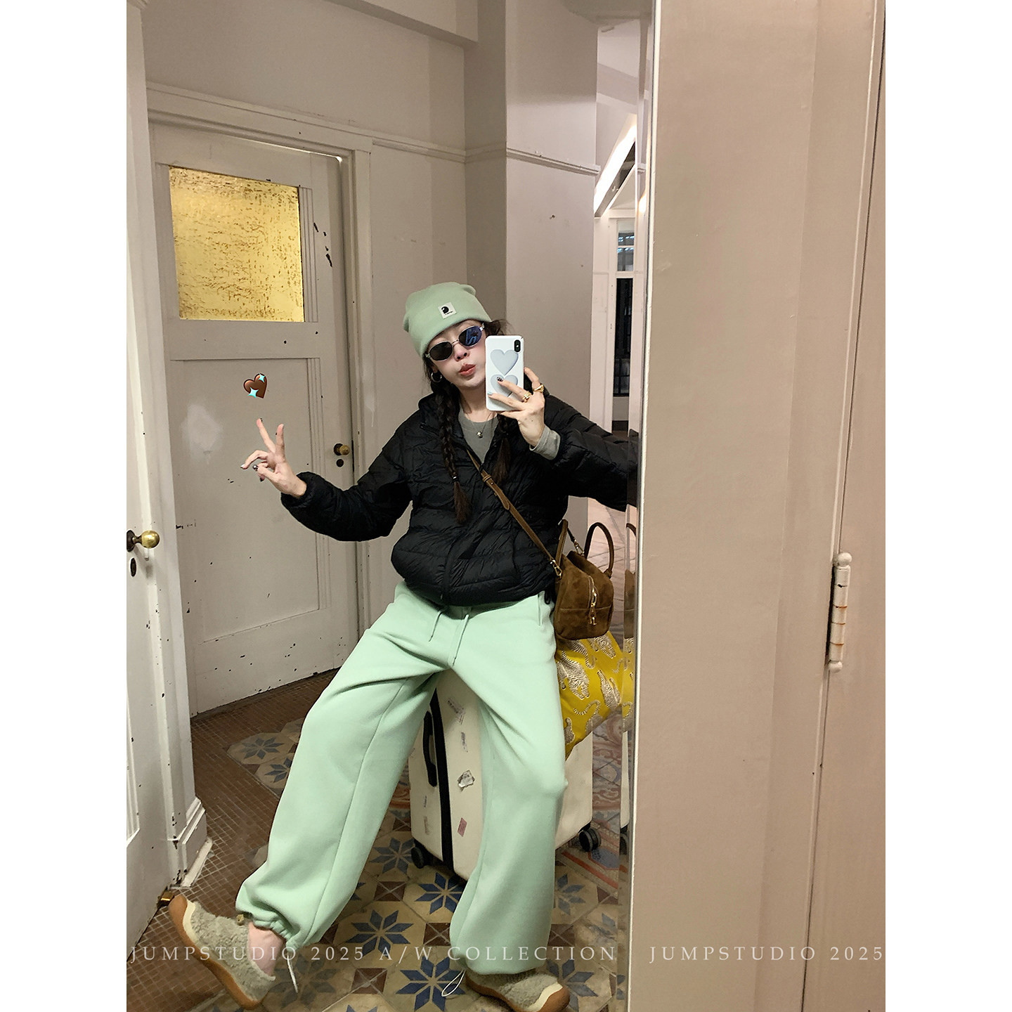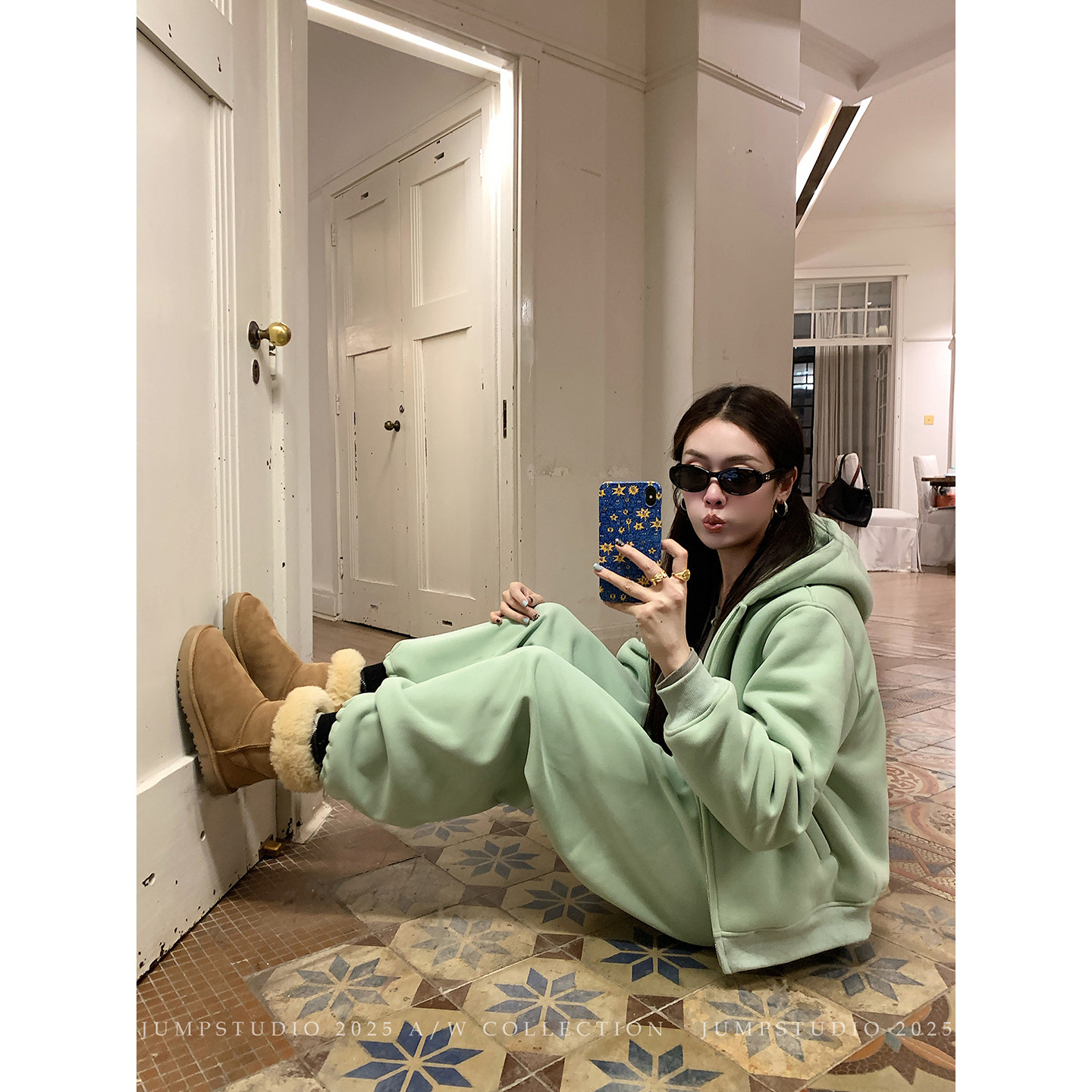 加绒连帽卫衣休闲裤 女冬季 两件套 清新苹果绿休闲运动套装 草莓跳