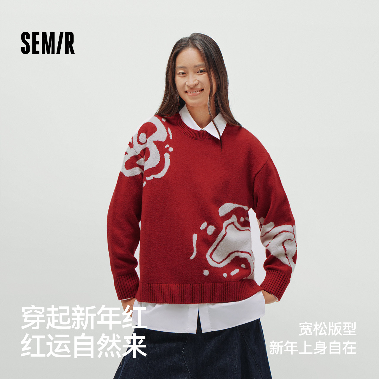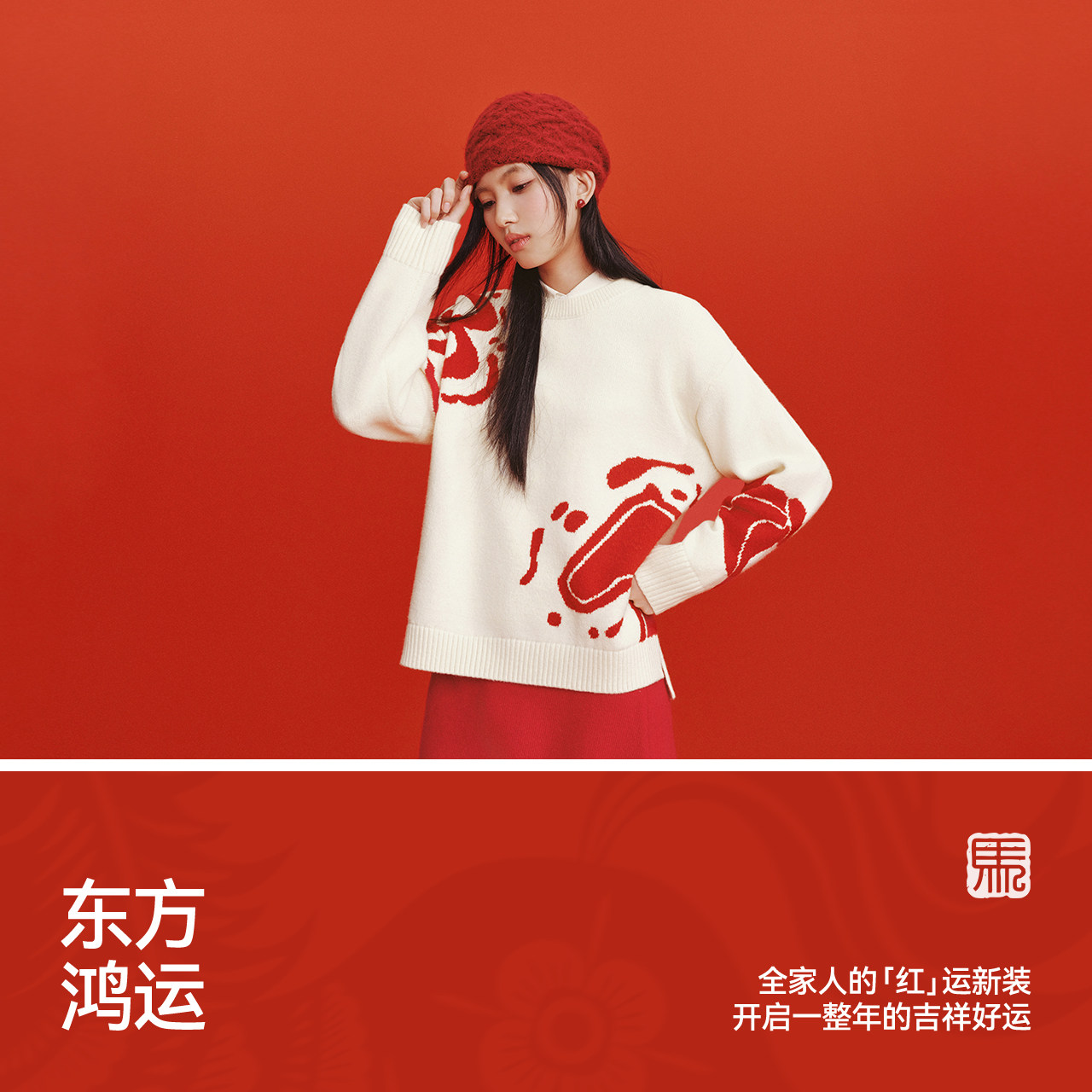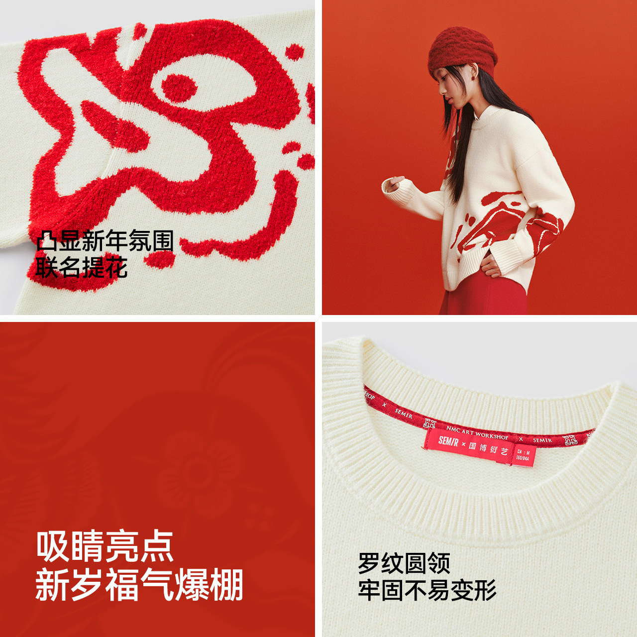 毛衫 红色2026新款 森柔森马国博衍艺联名系列毛衣女春季 商场同款