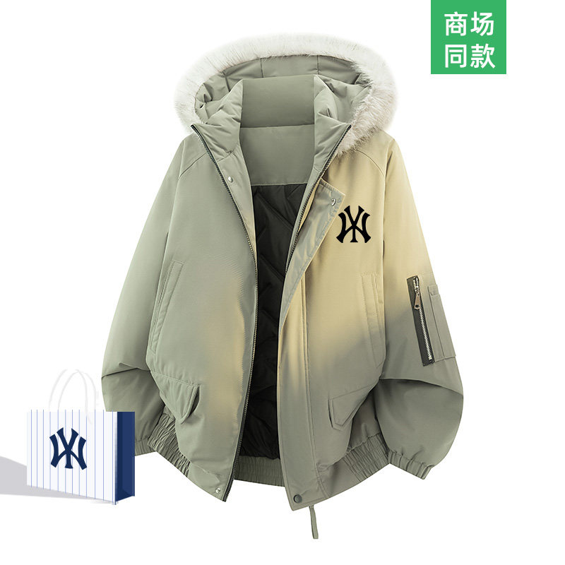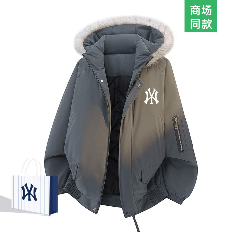 高街情侣面包服痞帅潮牌加厚棉衣 美式 黑色无帽立领羽绒服男款 冬季